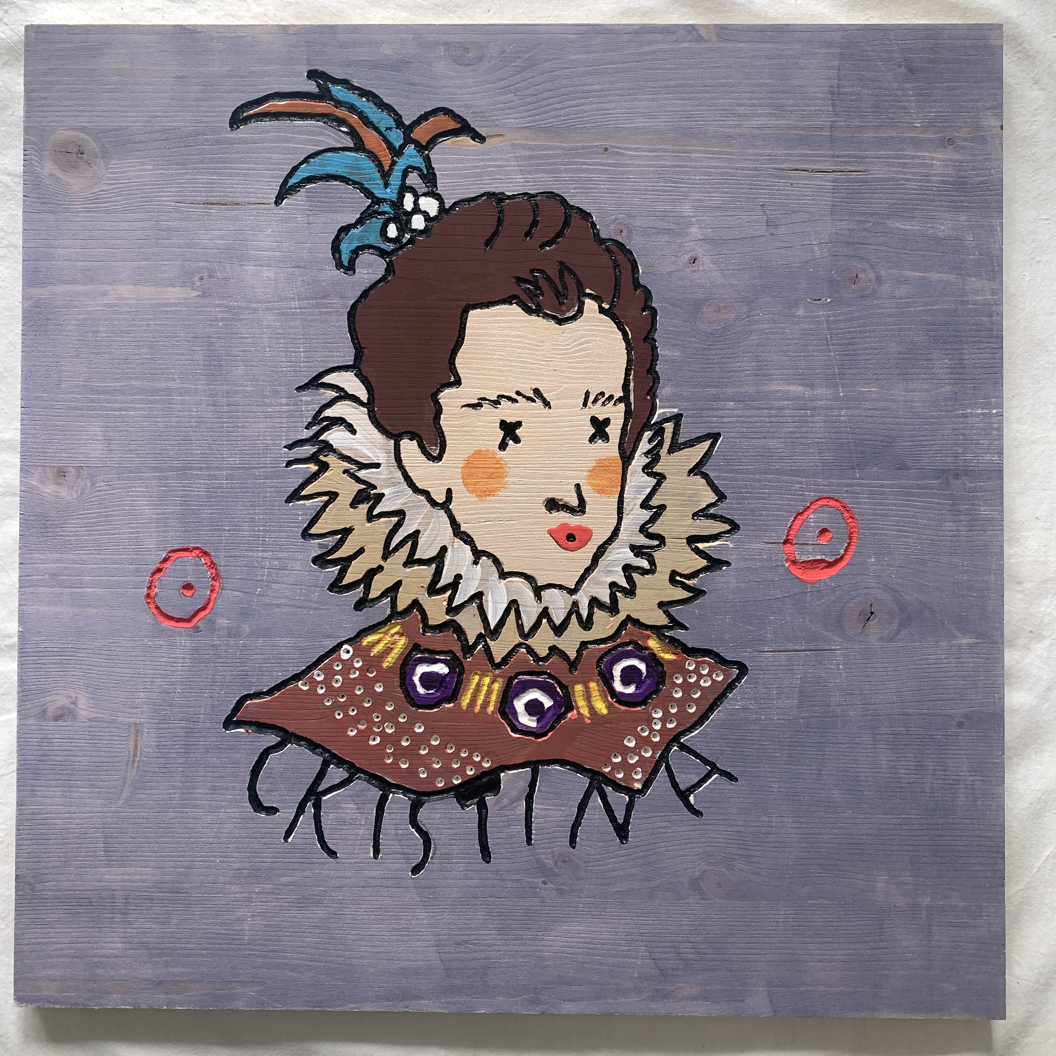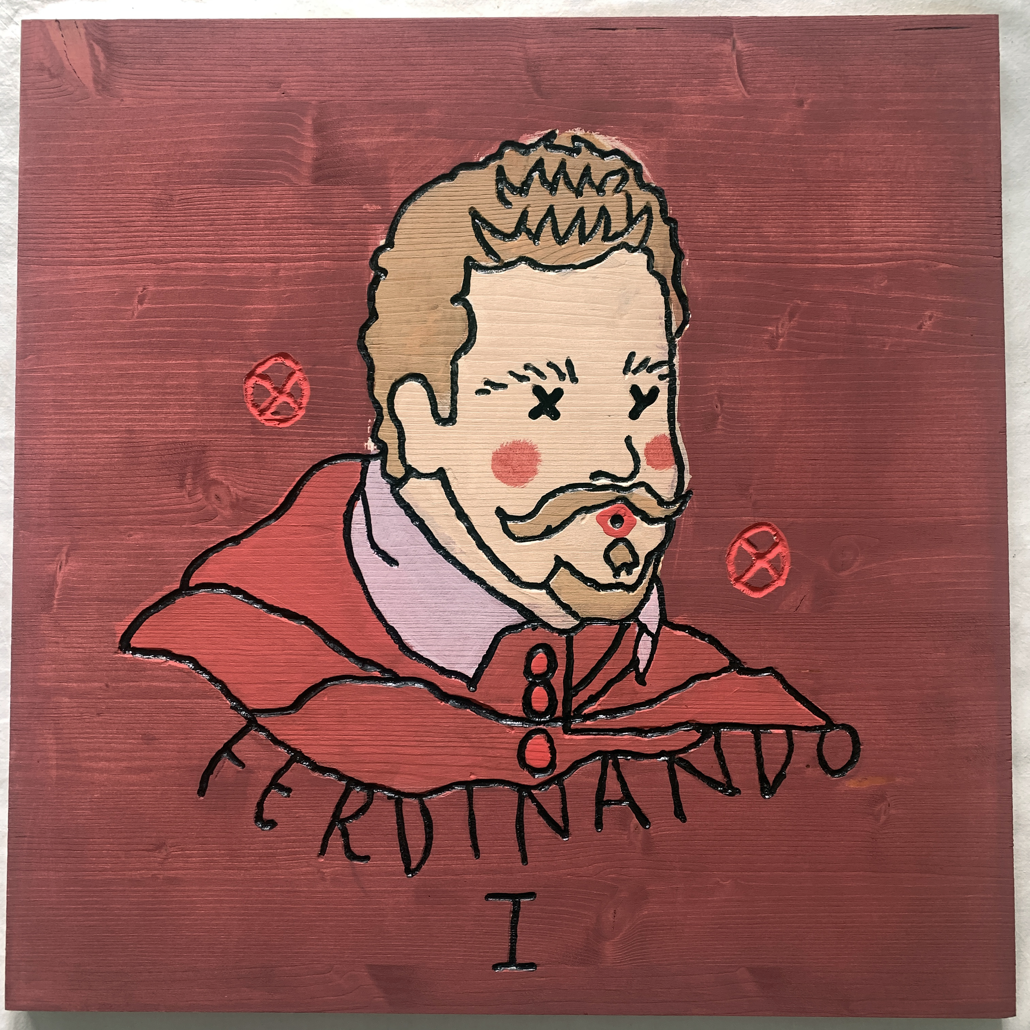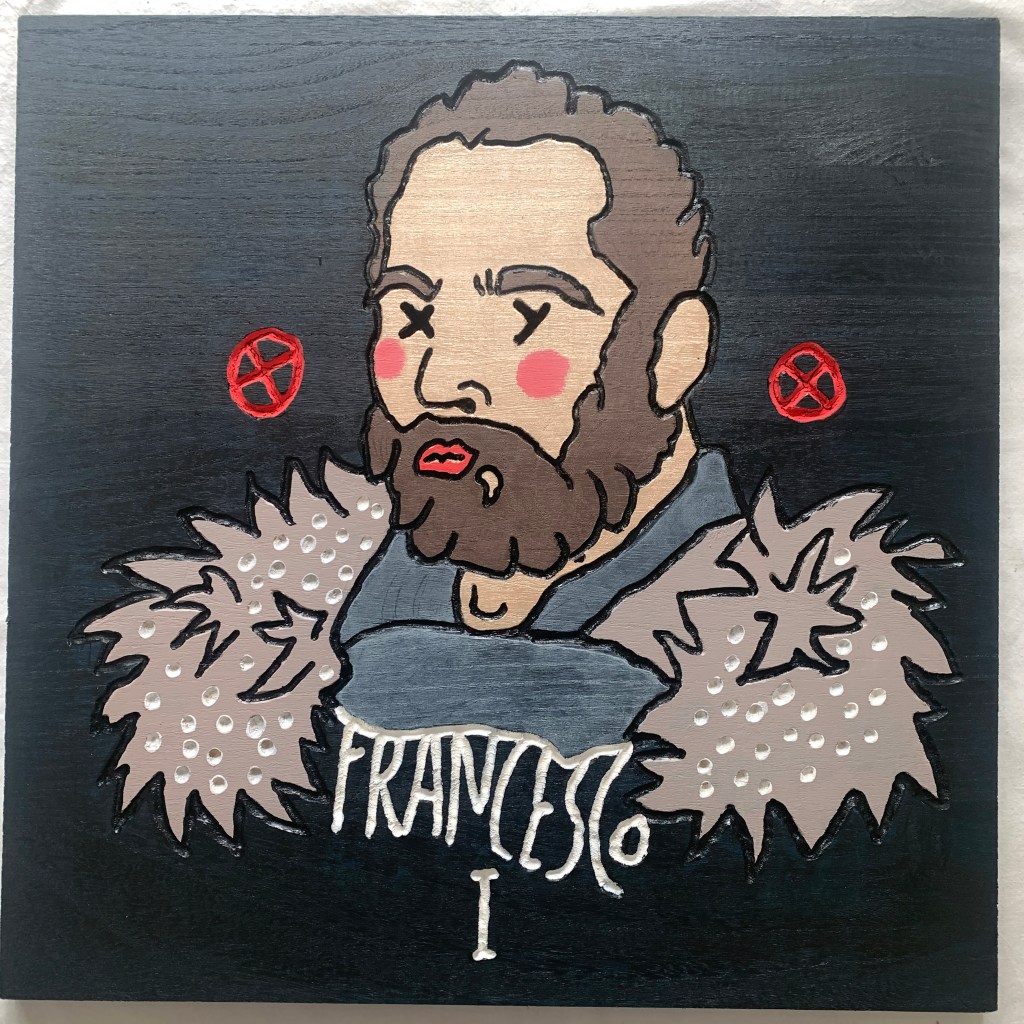 In 2025, he presents the solo exhibition “XXY – de’ Medici” at the Museo de’ Medici in Florence. The project comprises a series of stylized portraits depicting members of the Medici family and key figures of the Renaissance. Executed on painted and engraved wooden panels, the portraits are assembled into sculptural modular cubes. These works reflect on themes of power, patronage, and legacy, creating a visual and conceptual bridge between historical and contemporary modes of representation. The exhibition also features site-specific wall drawings designed in continuity with the portrait series.
